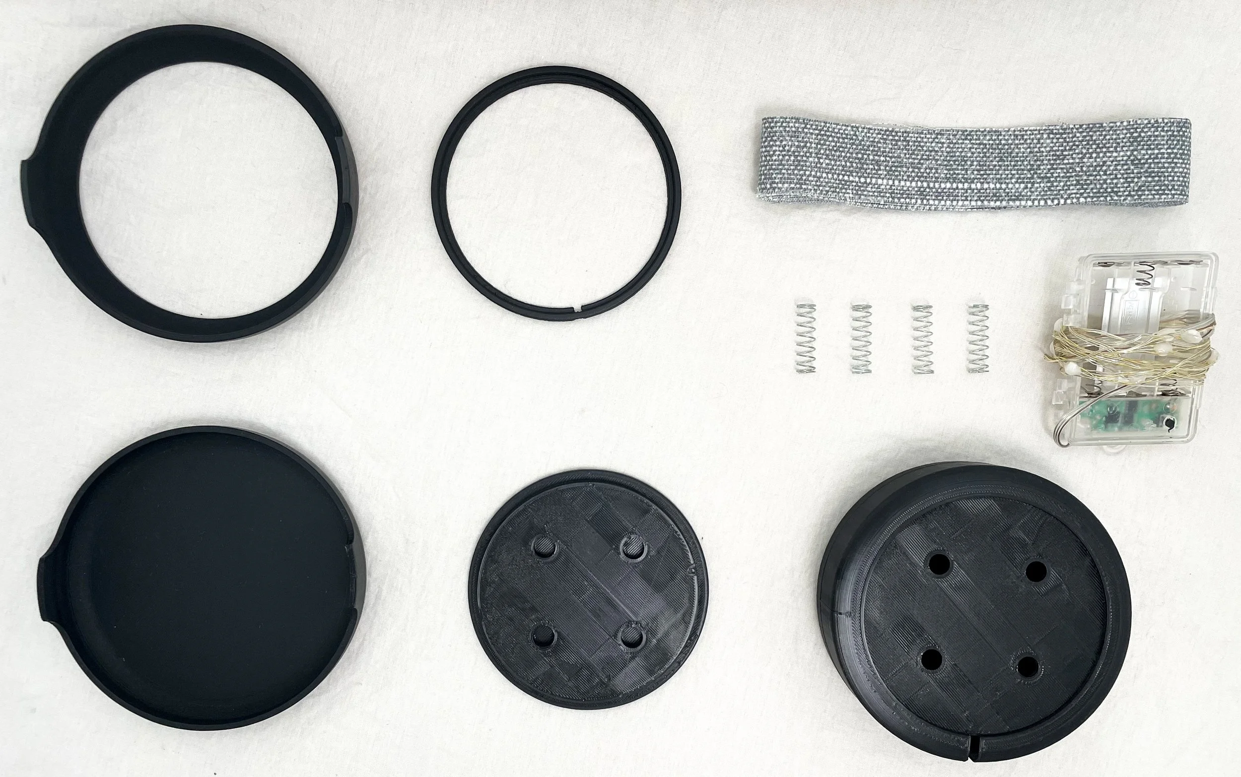 For the initial prototype, we combined 3D-printed custom parts with scrap fabric and readily available hardware—including springs, lights, and a battery pack—to build a fully functional model. This hands-on approach allowed us to quickly test the physical interaction, form factor, and basic electronics, helping us validate key aspects of the user experience early in the process.