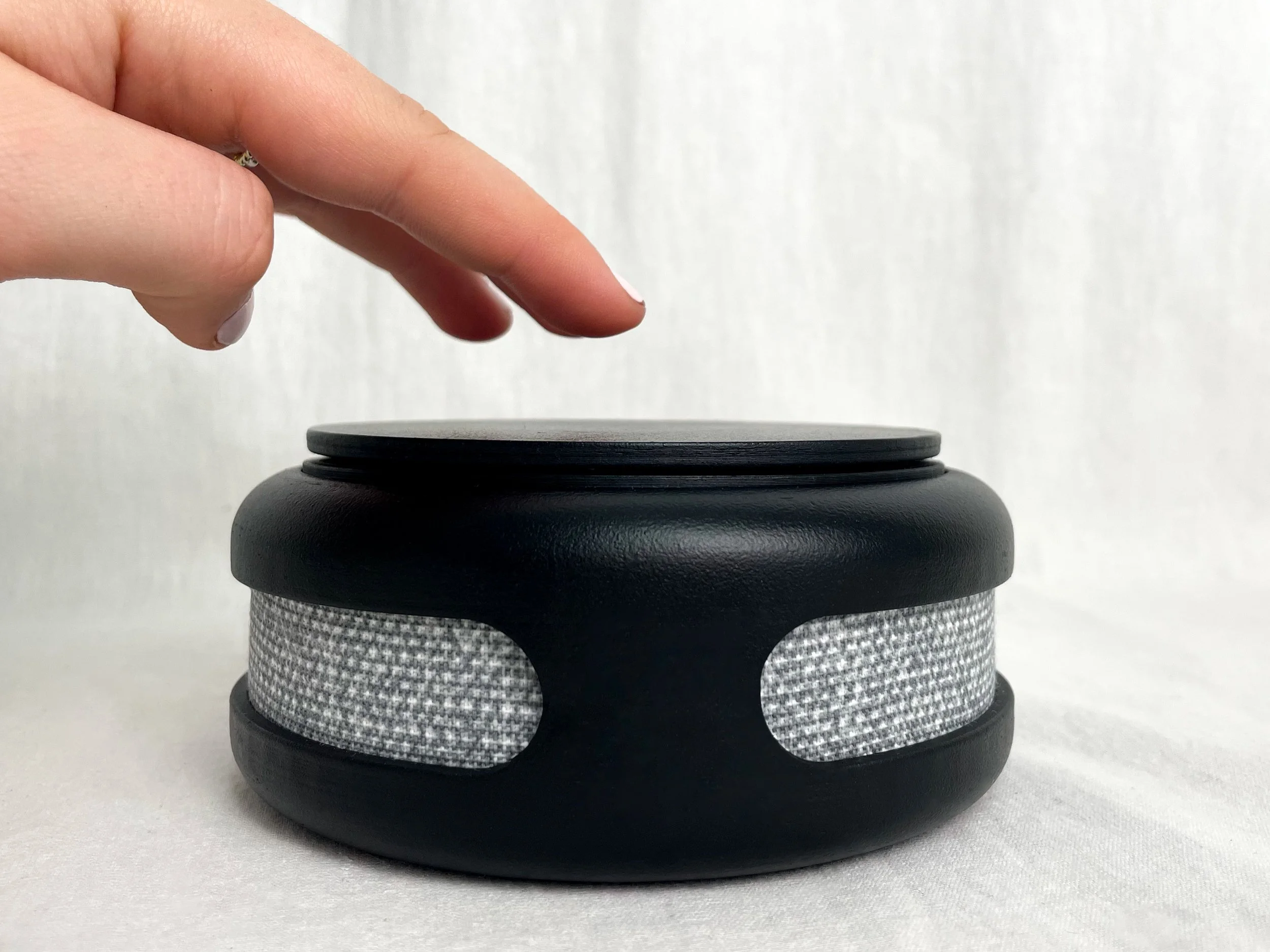 In the next iteration, we refined the tactile and visual feedback by adjusting the spring resistance to make the button press feel more deliberate and satisfying. We also modified the LED component to emit a soft, ambient glow—enhancing both visibility and comfort, while aligning with the calming aesthetic we envisioned for the final product.