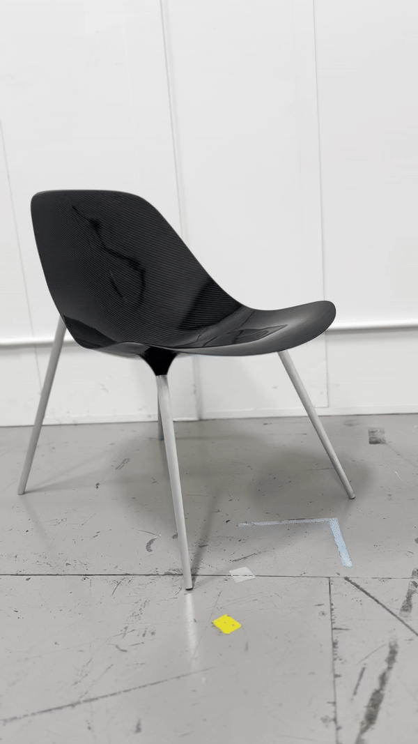 Once both elements were perfected, I assembled the chair by fastening the aluminum legs to the seat pan, allowing me to finally see the entire piece come together!
