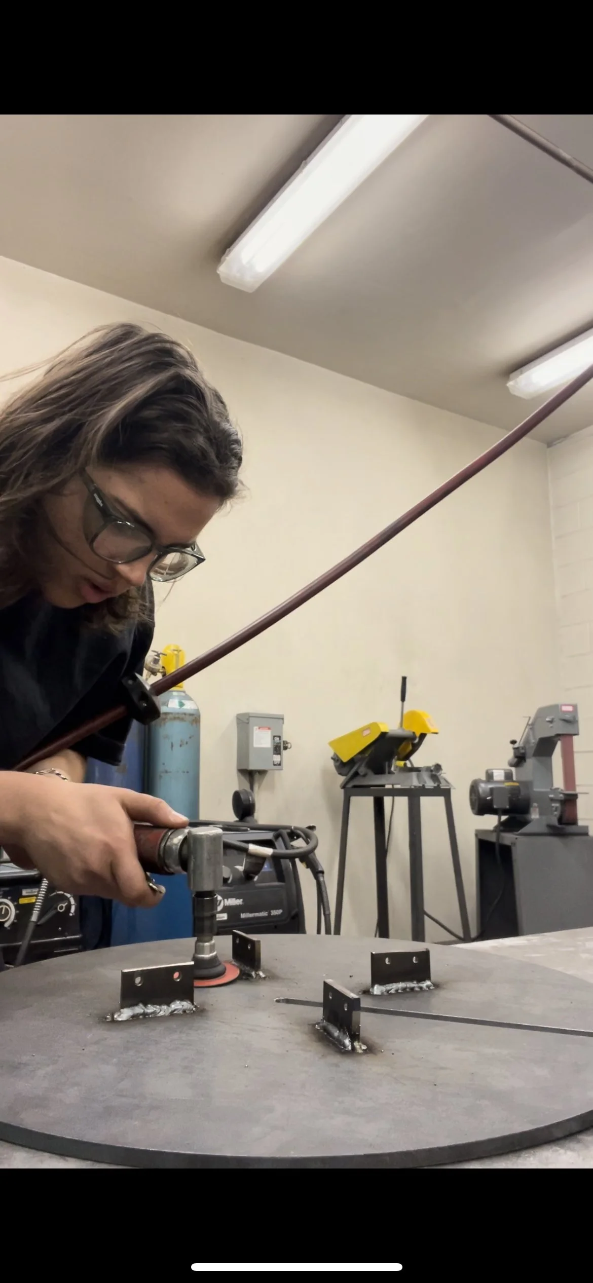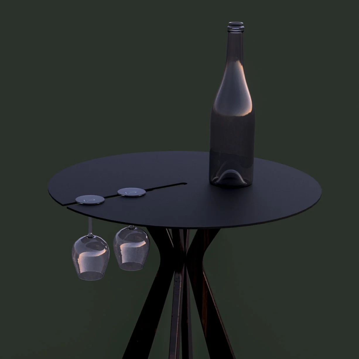 somber, designed to support quiet moments. featuring a purple heart base and a precisely milledsteel top with a channel cut from edge to center, allowing wine glasses to hang securely. built using both hand tools and precision milling, the table balances warm materiality with clean geometry.